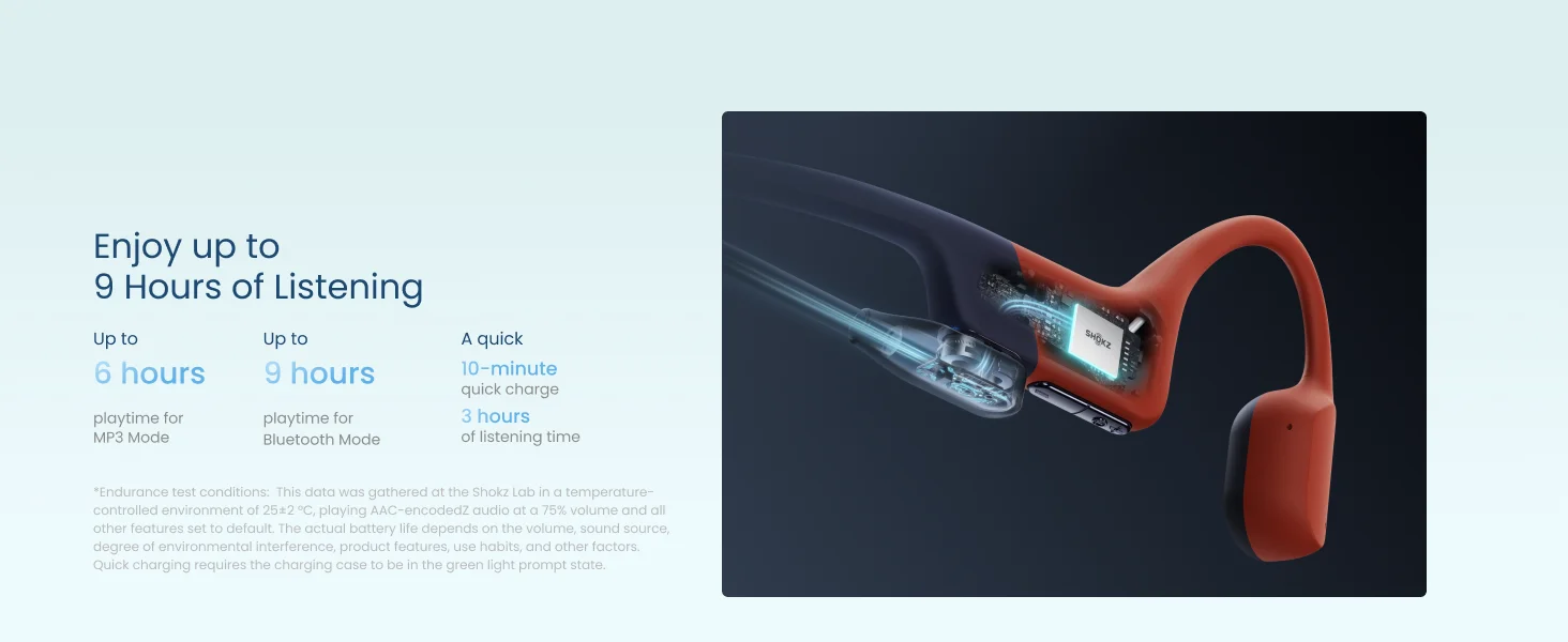 La technologie de conduction osseuse transmet le son directement par les pommettes jusqu'à votre oreille interne, laissant vos conduits auditifs libres. Résultat? Une conscience parfaite de votre environnement tout en profitant de votre musique. Sécurité et plaisir enfin réunis dans un dispositif de seulement 27,3 grammes.