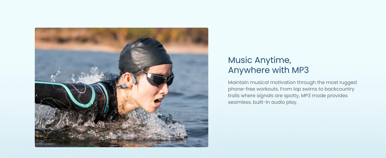 - Double mode: Bluetooth 5.4 pour l'extérieur, MP3 32Go pour la natation