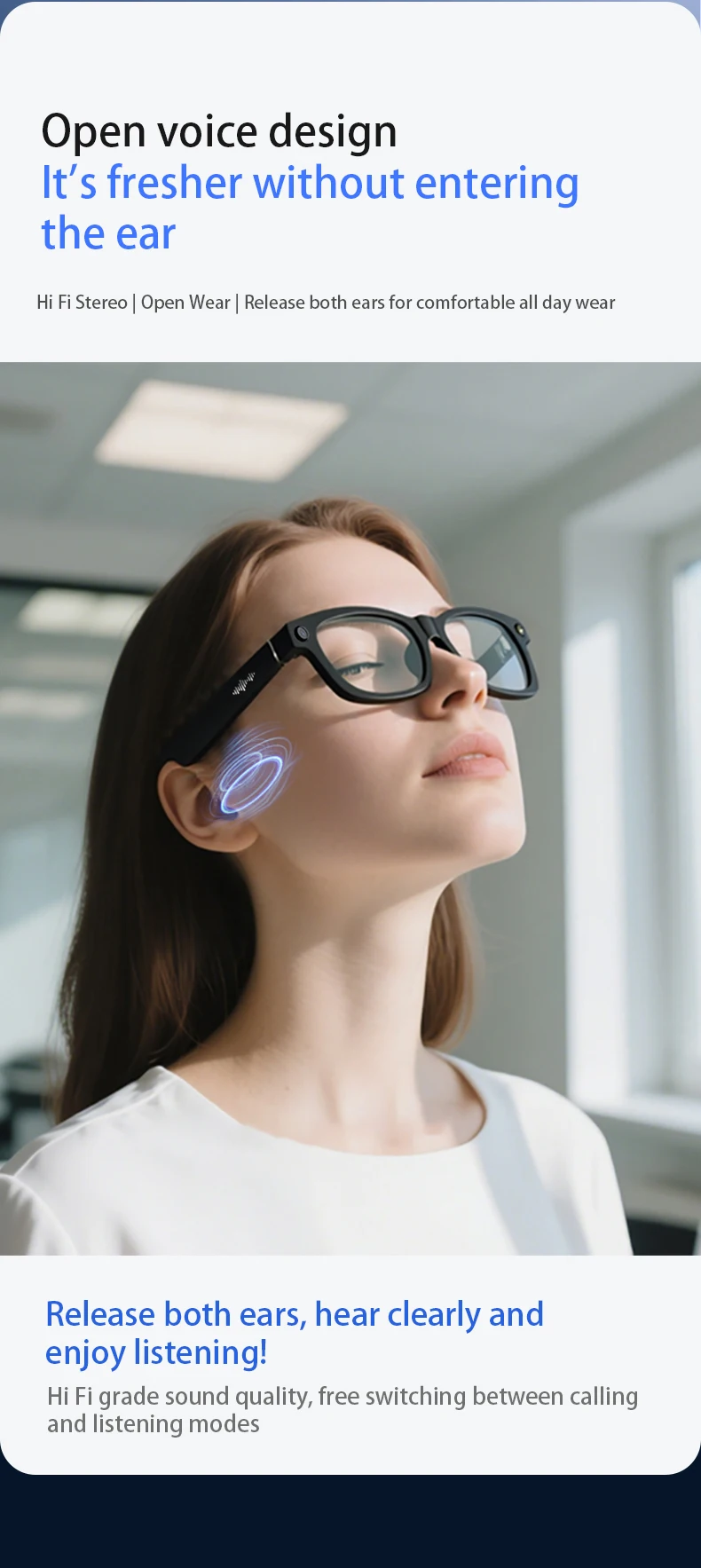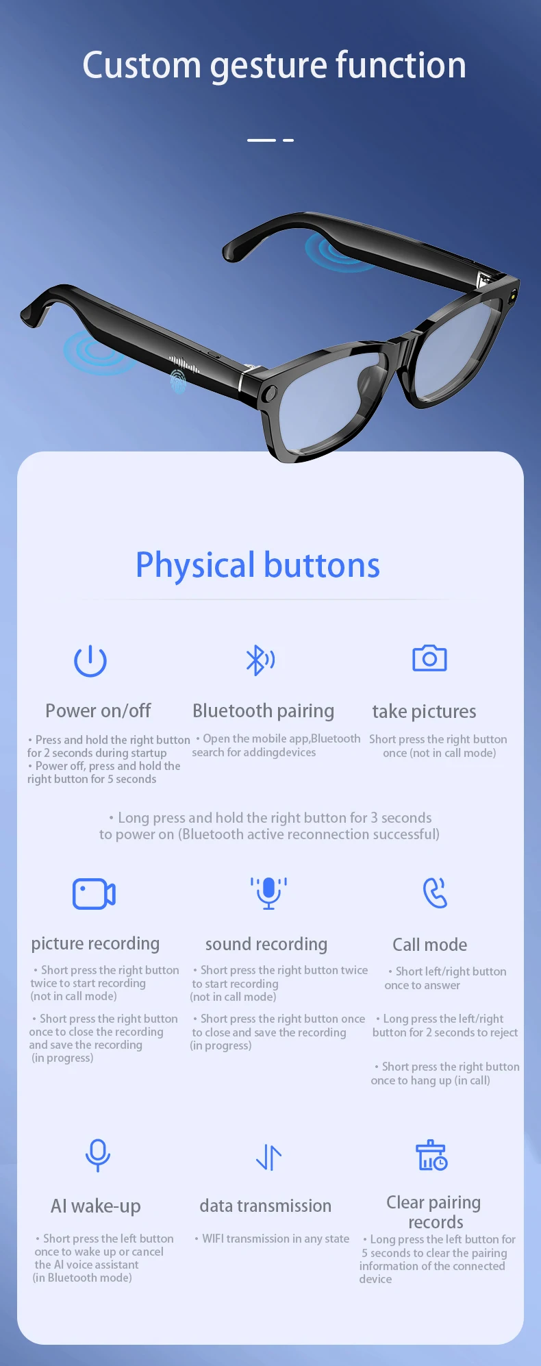 Blackview BV100 Lunettes intelligentes Bluetooth AI avec caméra d'enregistrement vidéo 8MP, lunettes de soleil avec traduction en temps réel, WiFi et BT 5.4